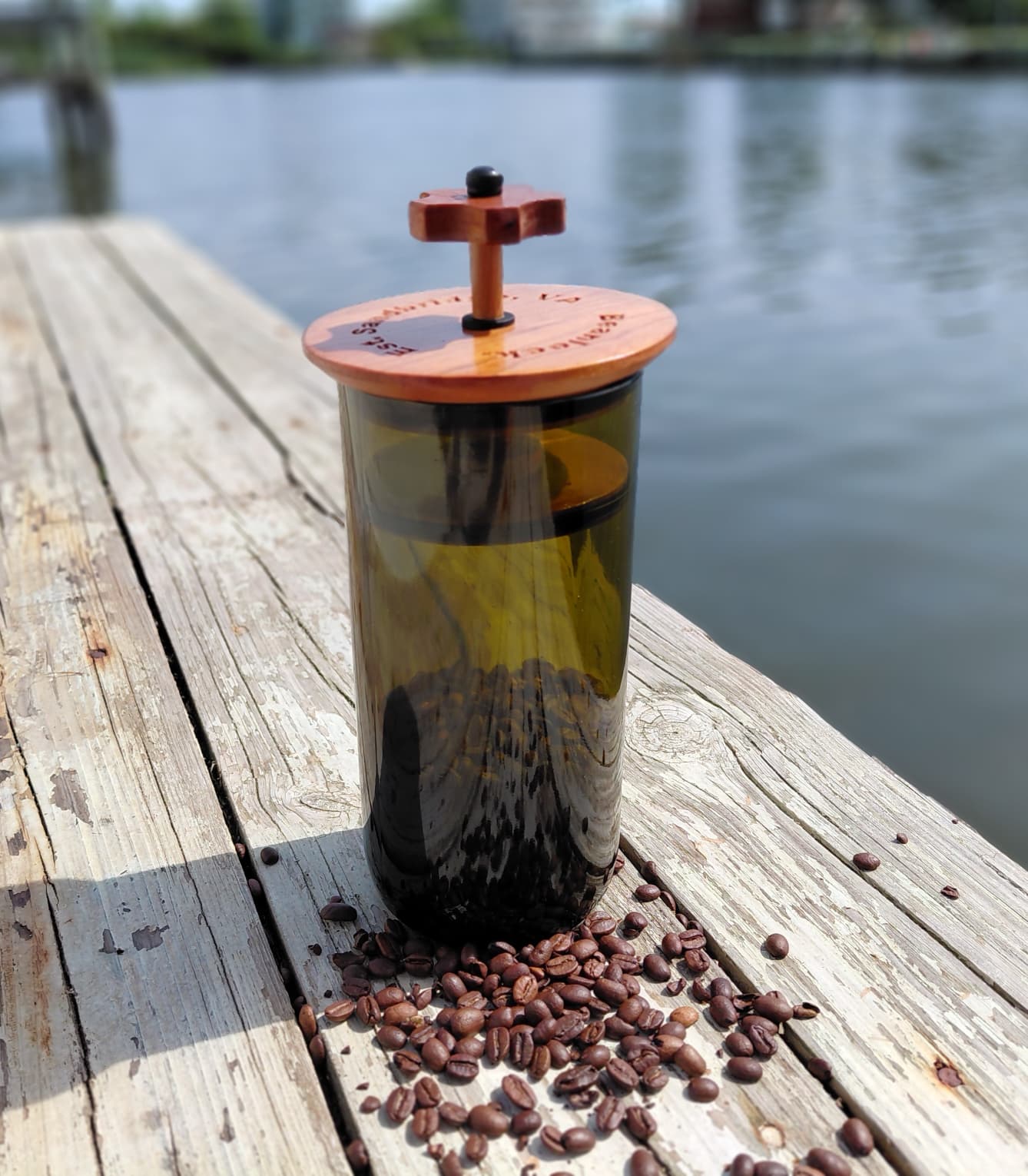 Beanlock is an initiative by Sandbridge, Virginia local and coffee-enthusiast Joshua Coyle. The Beanlocks are handmade in the USA from cherry wood and upcycled glass.